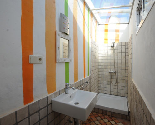 Das casa de Invitados (2-4 Personen) ist ein kleines Haeuschen mit einem durch einen Vorhang abgetrennten Schlafzimmer,einem Wohnbereich mit einem Sofa,dass als Bett umfunktioniert werden kann,,einem Aussenbad mit Badewanne und einem angrenzenden privaten Gaertchen, einem Innenbad mit Dusche,Waschbecken und WC.